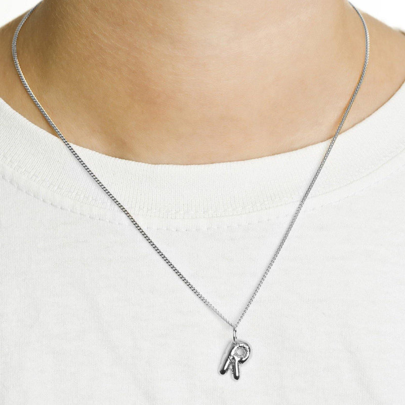playful and fun balloon letter pendant in silver. A necklace you can use every day and forever. It is timeless and adds a little fun to your outfit.