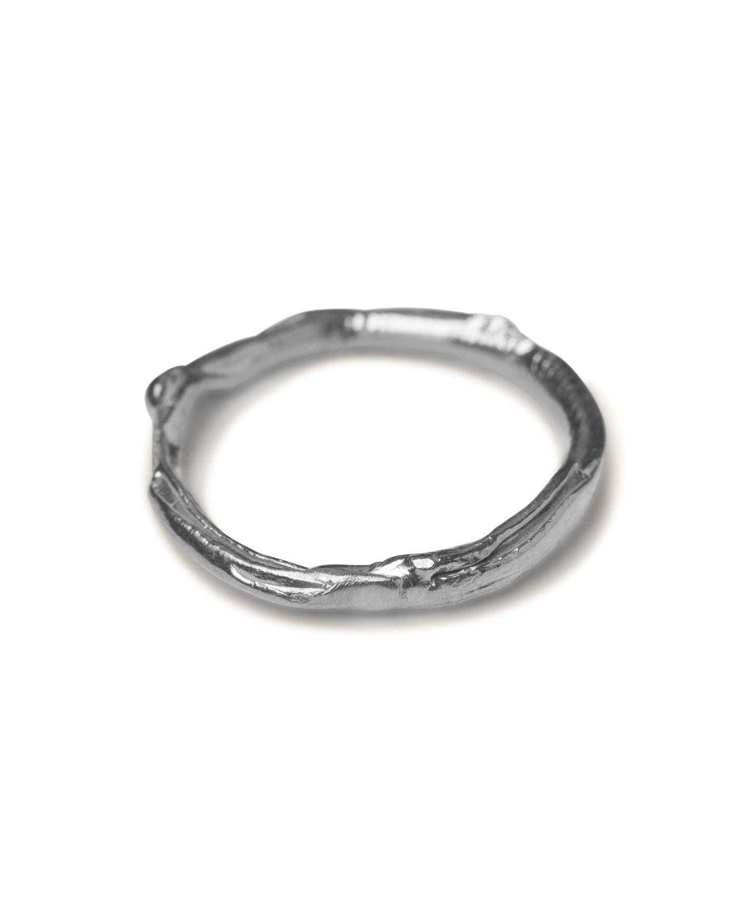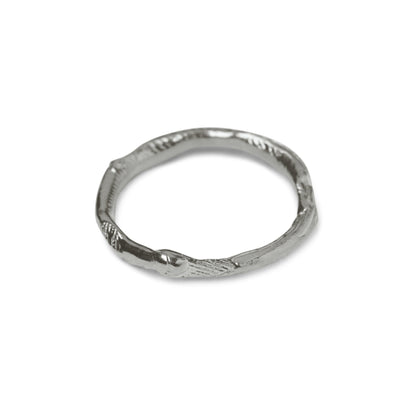 This tiny ring, meticulously handcrafted from recycled silver in our Copenhagen studio, is available in three sizes and designed for stacking. Despite its small size, the ring boasts an intriguing surface with a captivating blend of raw patches and polished areas that reflect light in surprising and beautiful ways. Hand-molded in wax before being cast in silver, the ring's unique texture is inspired by the seaweed that influenced this collection.