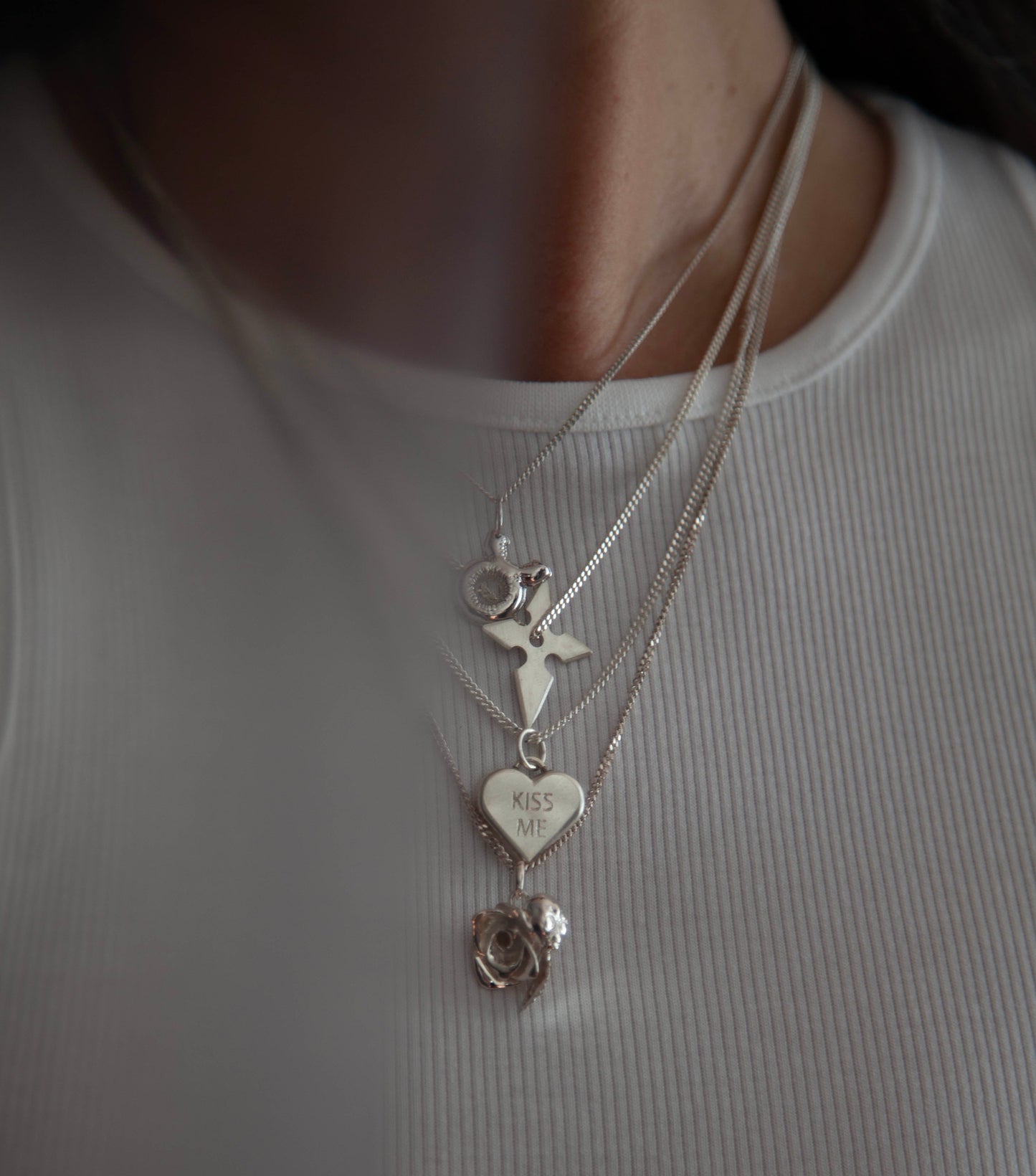 ROSE AND ALIEN NECKLACE - sterling silver pendant with chain