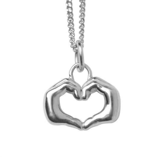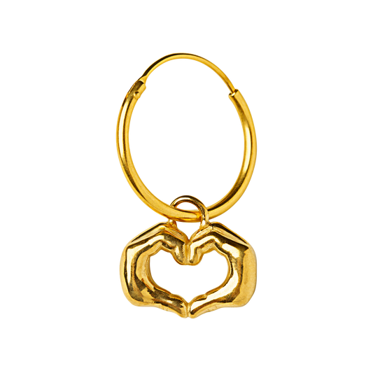 The collection LOVE & RESPECT, made from recycled silver, is inspired by the emoji of two hands shaping a heart, which started appearing a few years ago and has since replaced the classic heart emoji—at least in Europe. However, the collection is more than just a cute commentary on current pop culture.